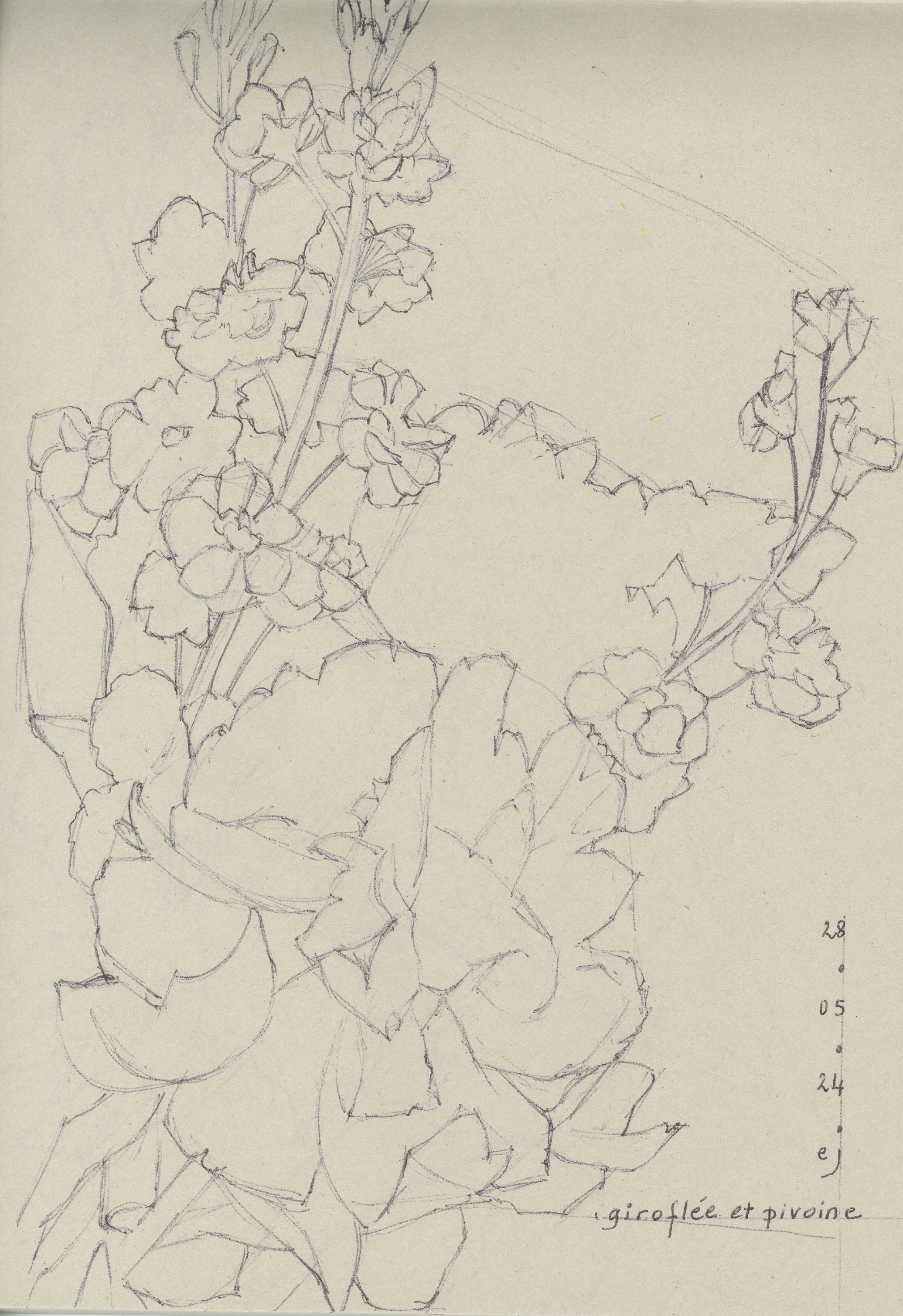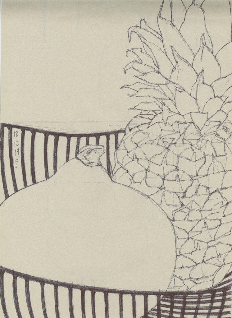 Dessin au stylo à encre sur papier recyclé format A4, 2024